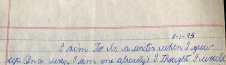 In a diary I’d kept decades ago, the first entry, for 6 January 1995, says “I am to be a writer when I grow up. (In a way I am one already.”) I was thirteen.
