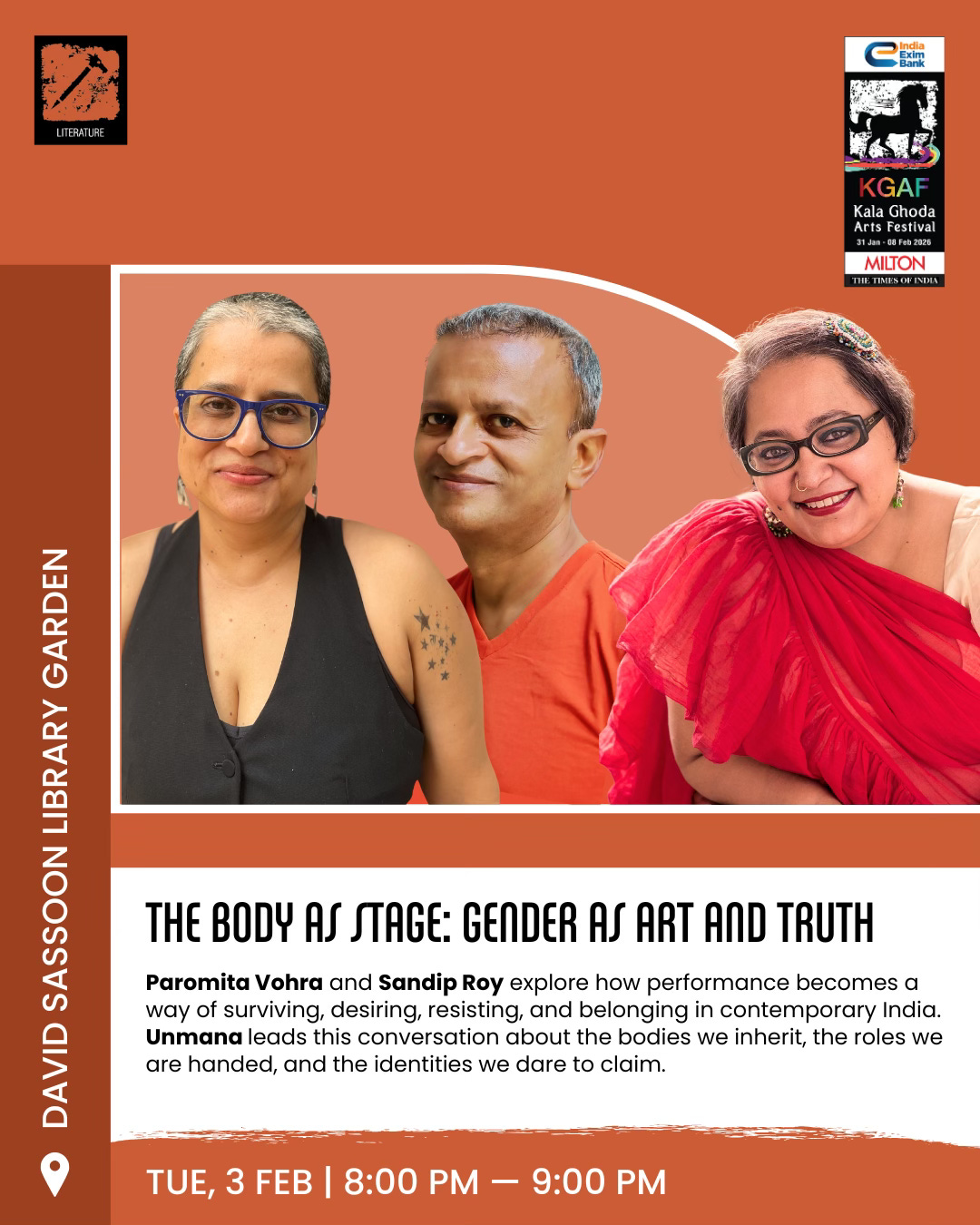 Event announcement: If you’re in Bombay, on 3 February, I’ll be at Kala Ghoda (David Sassoon Library) at 8:00 pm - 9:00 pm moderating the session The Body as Stage: Gender as Art and Truth. “Paromita Vohra and Sandip Roy explore how performance becomes a way of surviving, desiring, resisting, and belonging in contemporary India. Unmana leads this conversation about the bodies we inherit, the roles we are handed, and the identities we dare to claim.”